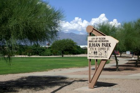 Located on the north side of the industrial park is Juhan Park (a City Park). Built in 1997 by City Parks and Rec. There is a basket court, softball field, a playground and ramada. Donated in 1991 by Kay Juhan, it provides a mix use, serving the west side community and neighborhoods. Instrumental people in the dedication were Sam Camacho, Glenn Dixon, Jose Ibarra, Jim Ronstadt, Dan Felix to name a few. On the weekend and in the early evening sometimes you can catch a little league team practicing for a big game. Currently we are trying to promote a softball complex for El Rio/BAJA girls fast pitch softball. In the future there are three more proposed softball fields. Please go to Park News to get the update. Also in the near future is the proposed Pima County Linear Park along the south side of the Santa Cruz River for bike traffic and walkers/joggers. Soon we hope to see lit fields at night and hear the sound of children playing sports tournaments on weekends and holidays. Please encourage with your letters to Parks and Rec. & Tucson City Council to move forward with development.